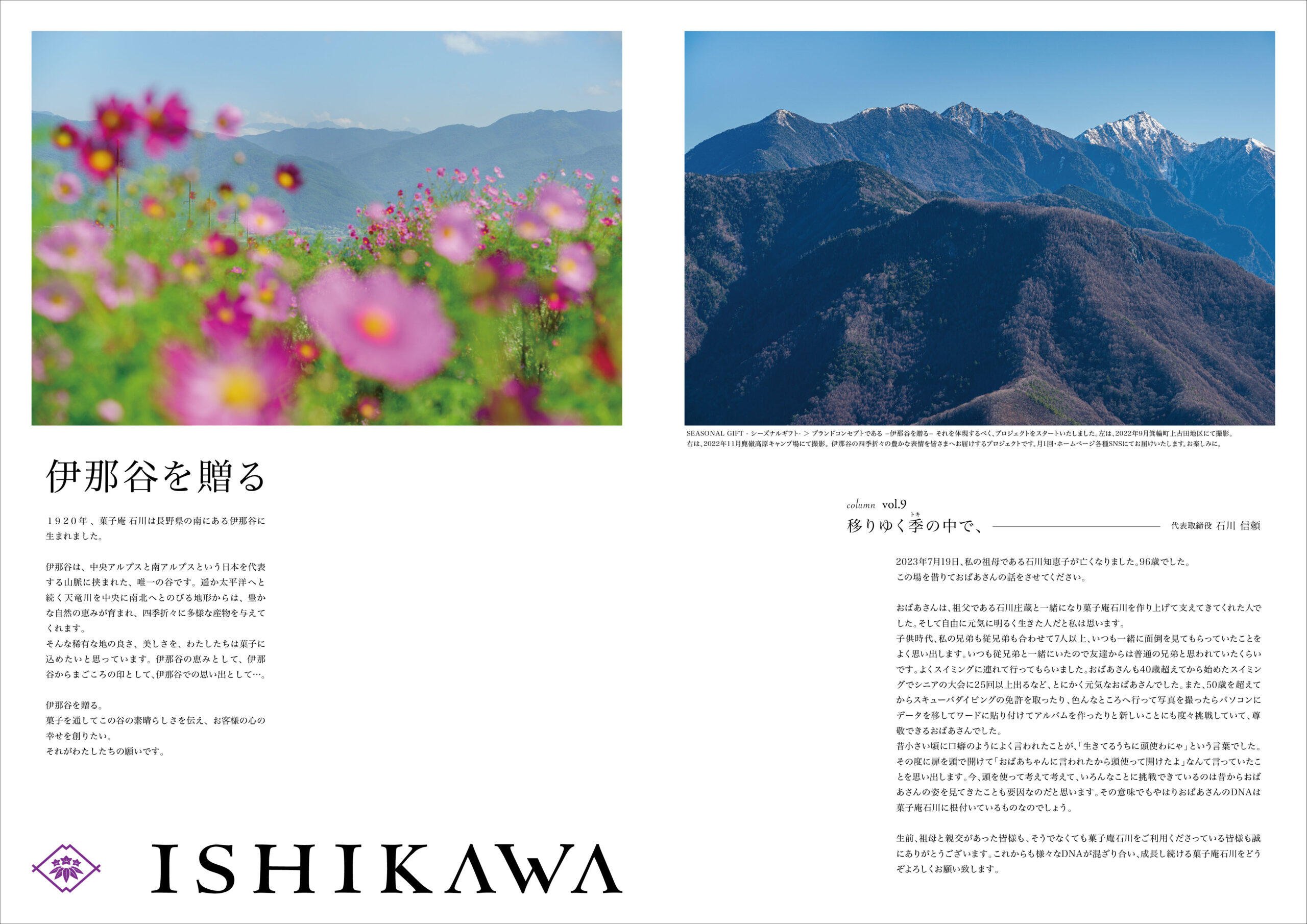 菓子庵石川では、色彩豊かな伊那谷を菓子屋としての表現でお届けしたい。