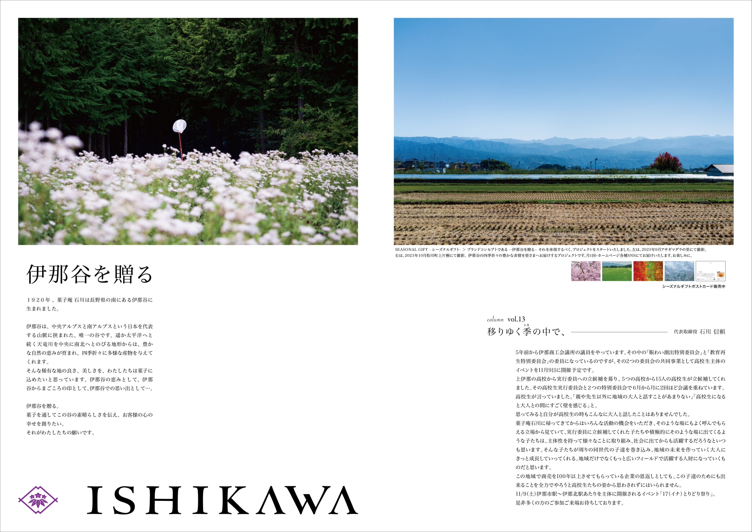 菓子庵石川では、色彩豊かな伊那谷を菓子屋としての表現でお届けしたい。