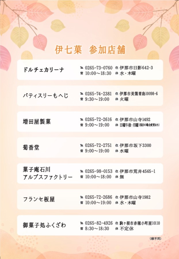 伊七菓 2025 AUTUMN 10/18(土)・25(土)予約受付中