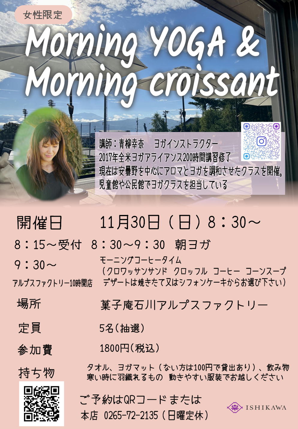 2025.10.2411月 朝ヨガイベント Morning YOGA&Morning croissant 【女性限定】