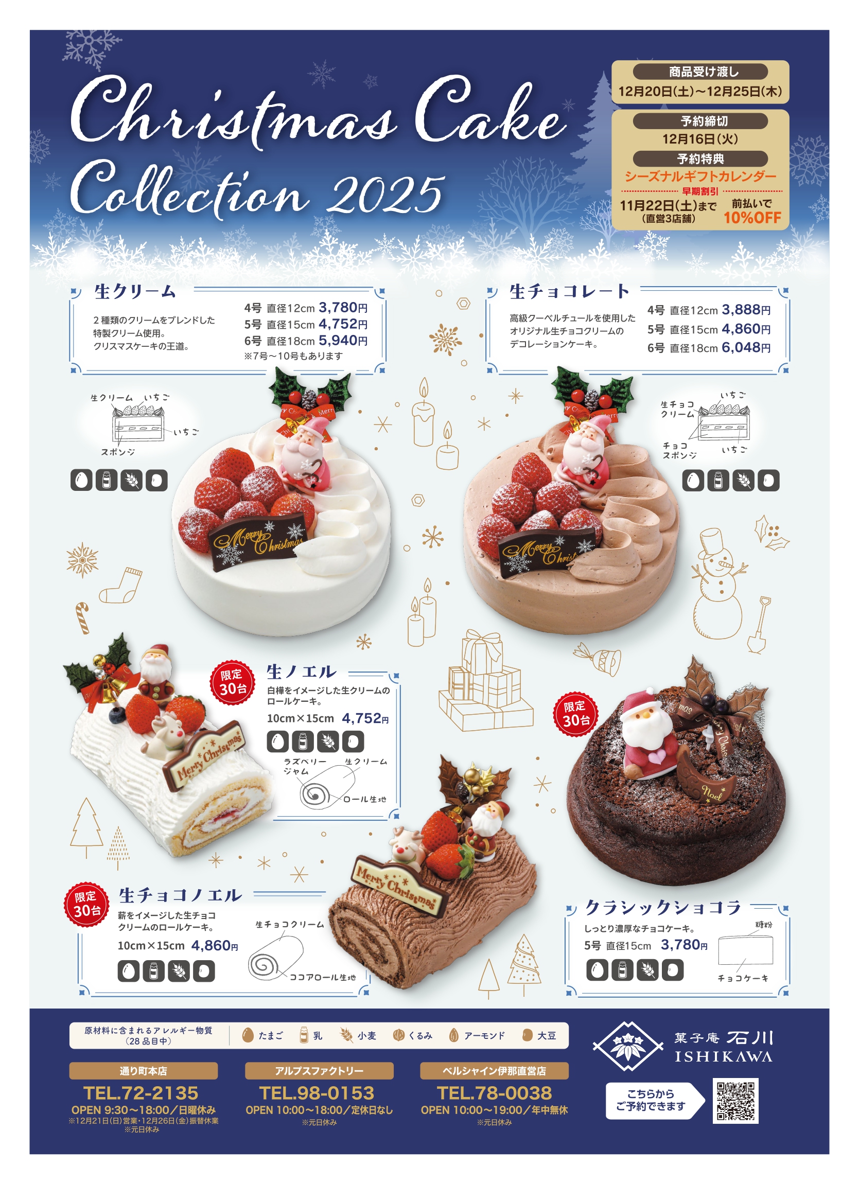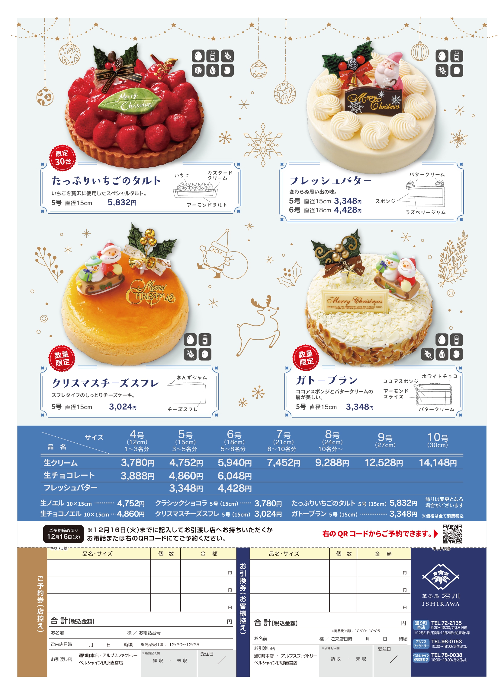 2025.11.03クリスマスケーキ予約受付中 現在早期割引実施中