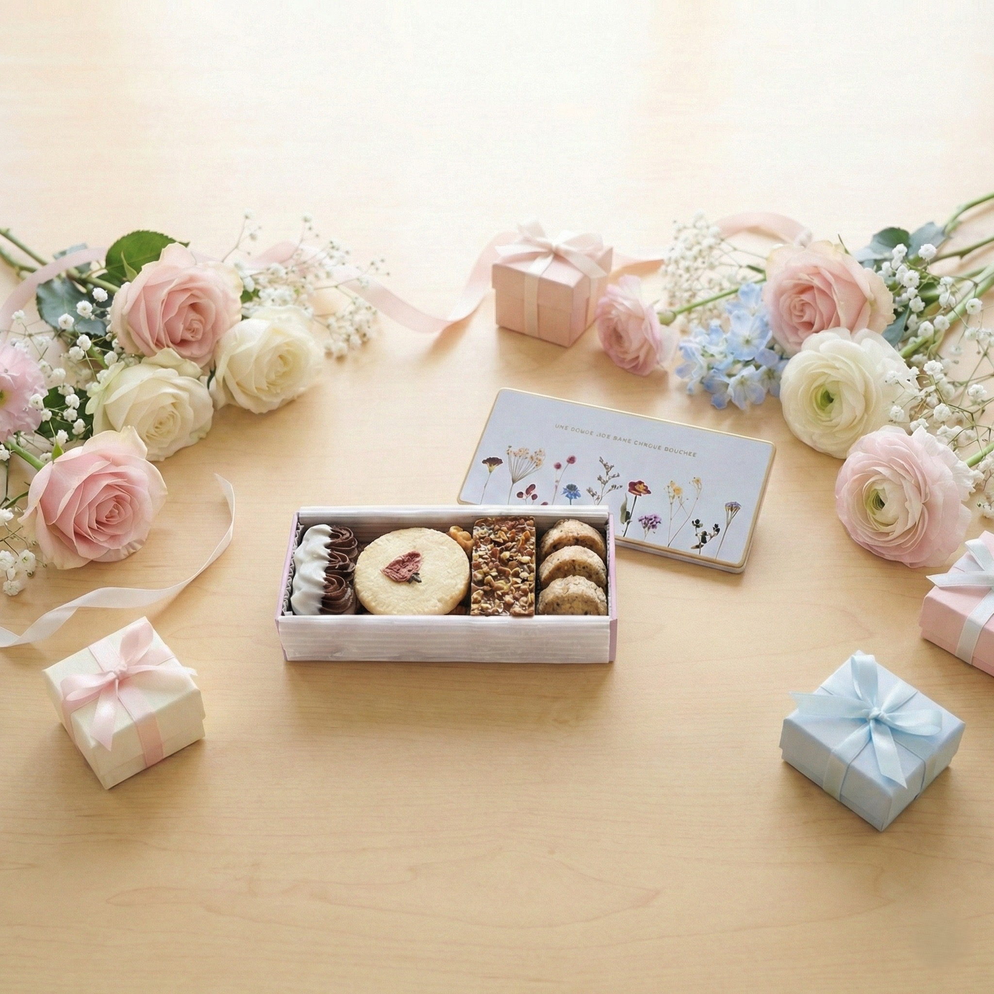 ホワイトデーのお返しや、自分へのご褒美に 数量限定 春のクッキー缶 ¥1,500円 紅茶サブレ、ココアヴィエノワ ホワイトチョコ、フロランタン、桜ショートブレッド、ヴィエノワ 賞味期限:3週間 内容量:14個 【アレルギー表示】 卵、小麦、乳、アーモンド、大豆