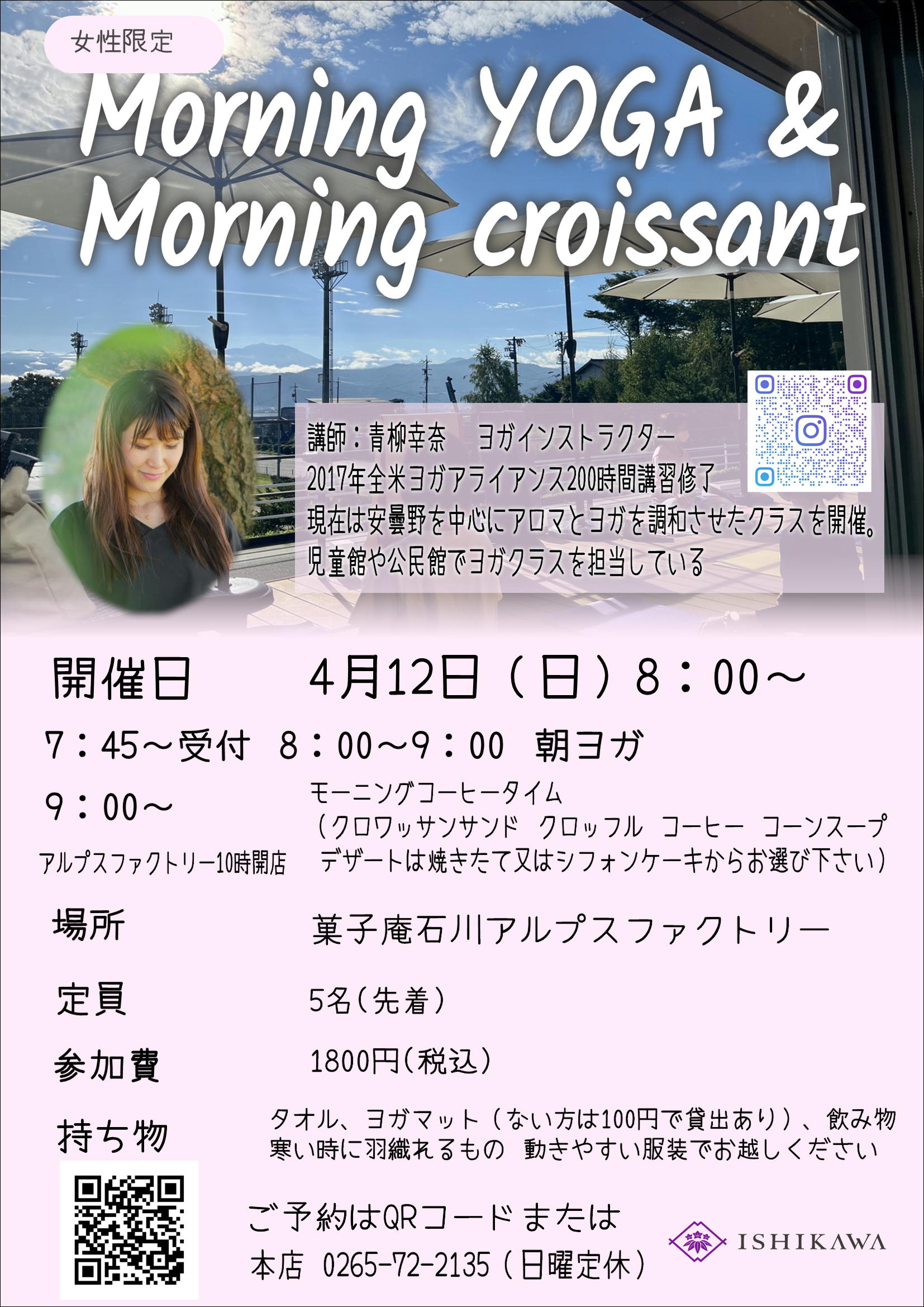 2026.03.194月 朝ヨガイベント Morning YOGA&Morning croissant 【女性限定】