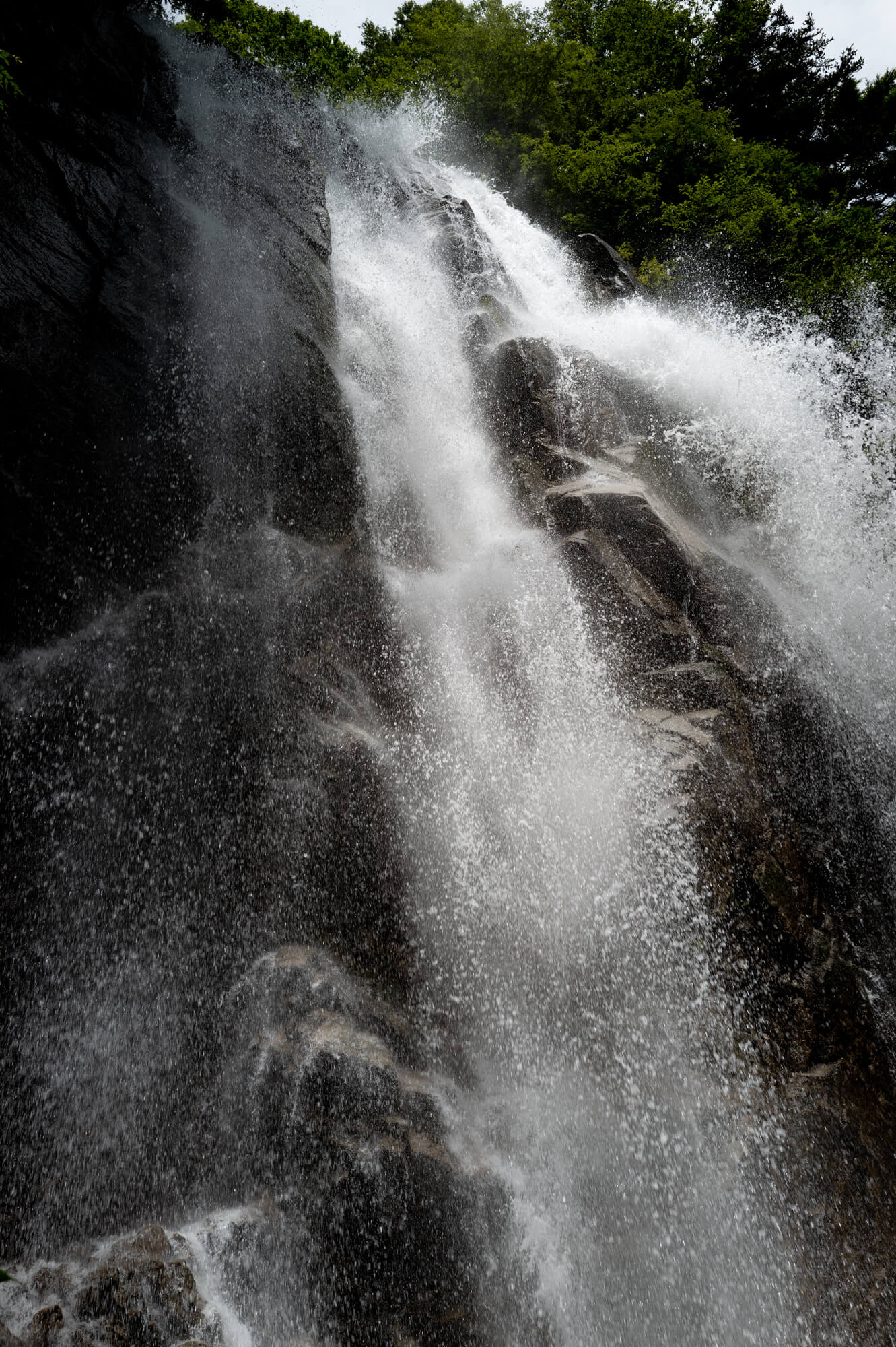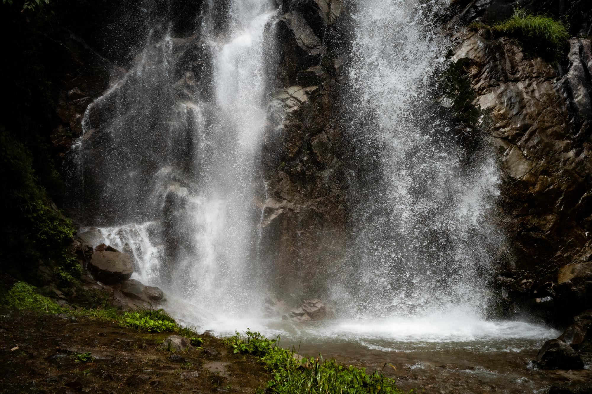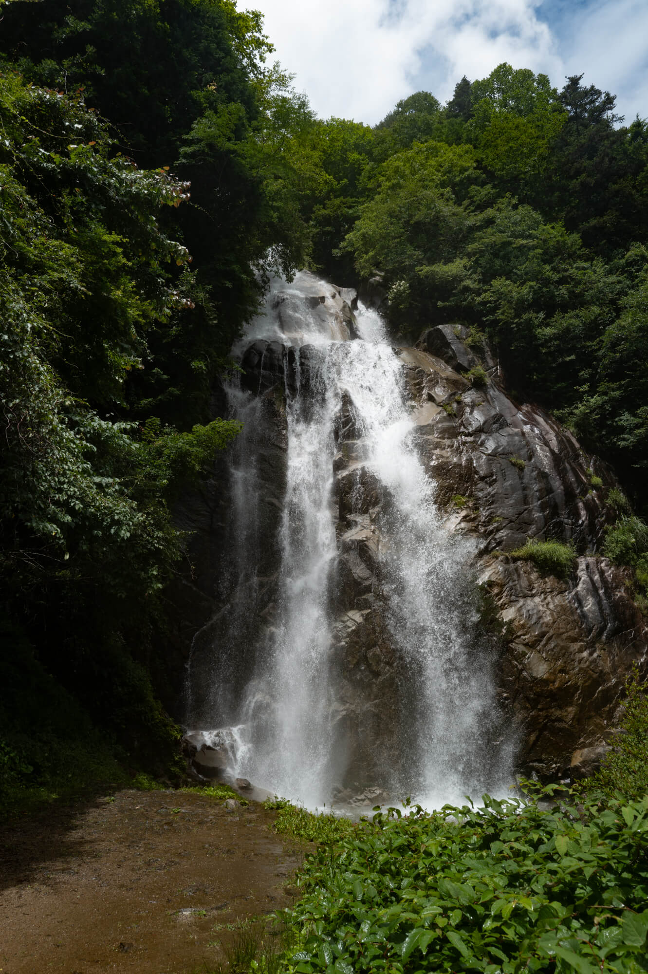滝そのものは約50m。決して巨大ではないですが、眼前に立った瞬間、水の迫力に心を奪われました。ゴォーッという地鳴りのような轟音、岩肌を落ちていく水の勢い、そして舞い上がる細かな飛沫、まるで自然そのものに飲まれたような感覚に包まれました。それとともにじわ〜じわ〜と、言葉にすれば「畏怖」の感覚が迫ってきました。自然におそれおののく感覚、理屈ではない感情。街ではなかなか味わえない種類の感覚を久しぶりに味わいました。